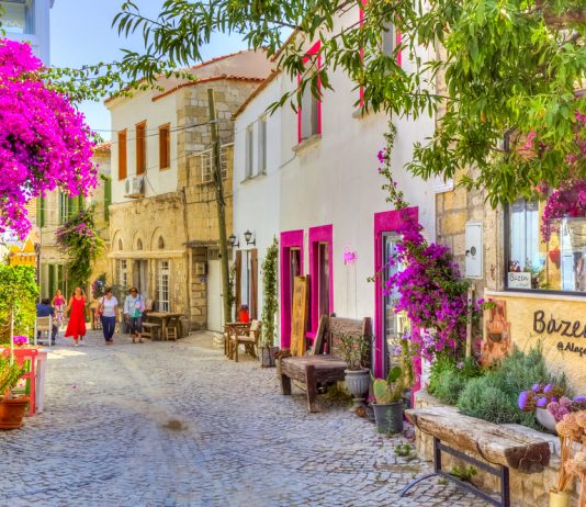 Ege’nin en özel köşelerinden biri olan Alaçatı, İzmir’in Çeşme ilçesine bağlı; taş evleri, begonvillerle sarılmış sokakları, butik otelleri ve özgün atmosferiyle öne çıkan, geçmişin dokusunu bugünün şıklığıyla buluşturan bir tatil beldesidir. Sadece yaz mevsiminde değil, dört mevsim boyunca stil sahibi bir yaşam kültürü sunar.